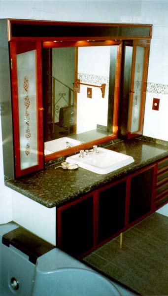 Nos quartos, cozinha, copa, banheiros, churrasqueira.Feitos de Mogno. |