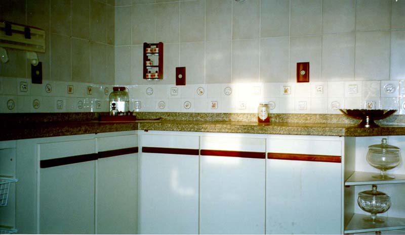 Com armários embutidos, bancada de mármore e azulejos artesanais |